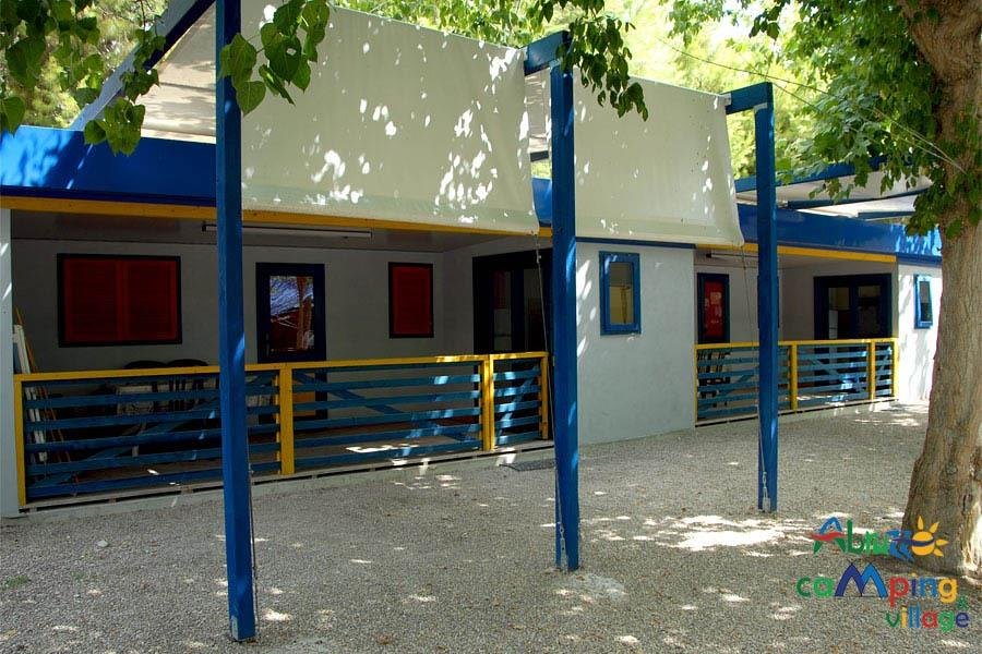 It has 60 sq.m. pitches equipped with power sockets, comfortable brick bungalows with kitchens, beds for 2/6 people, toilets and ample parking.