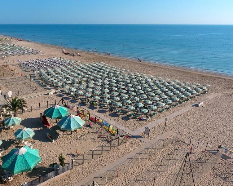 Private and equipped beach of 350 m2 that lies on the blue Adriatic Sea. It has a CARIBE BEACH chalet with a bar, sports equipment and entertainment.