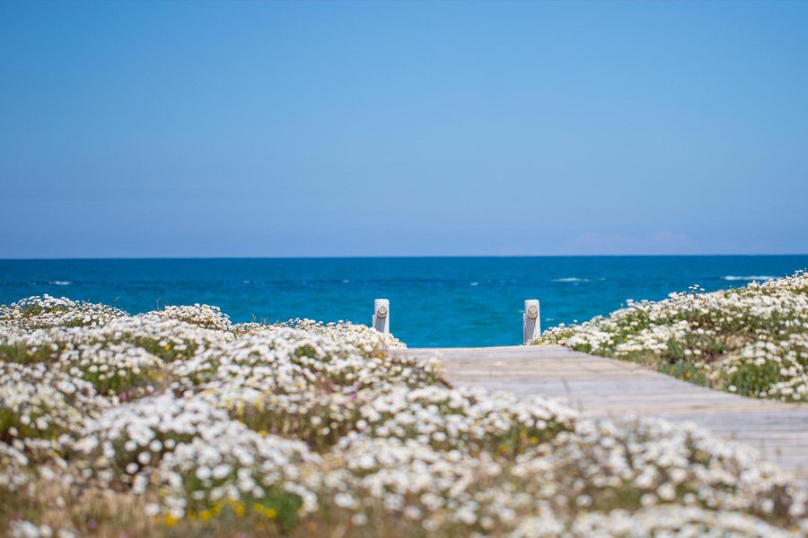 Il lungomare che costeggia la spiaggia ha anche la pista ciclabile che prosegue per 30 km ed è molto apprezzata dagli amanti della bicicletta che nelle loro passeggiate possono godere appieno del panorama marino.