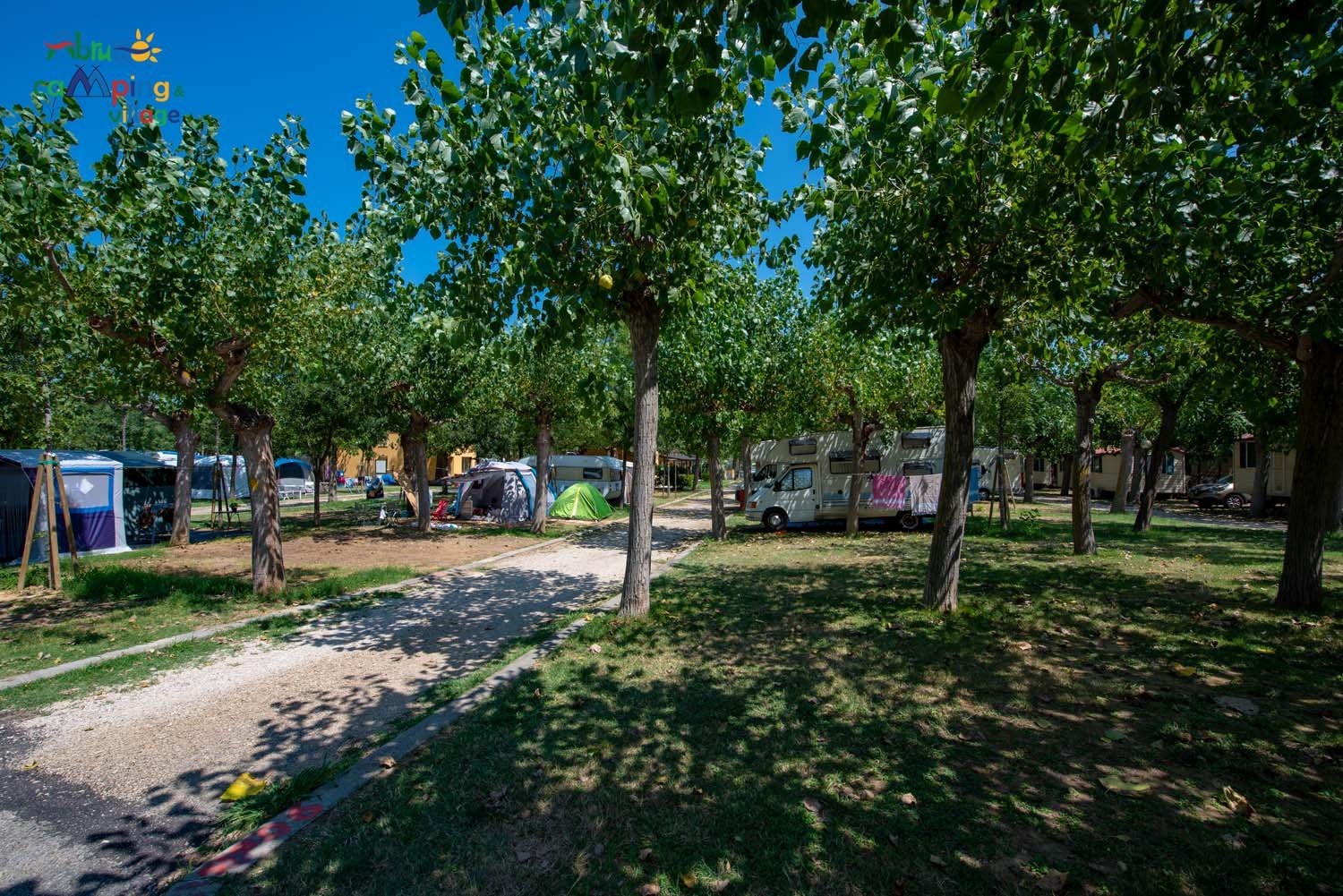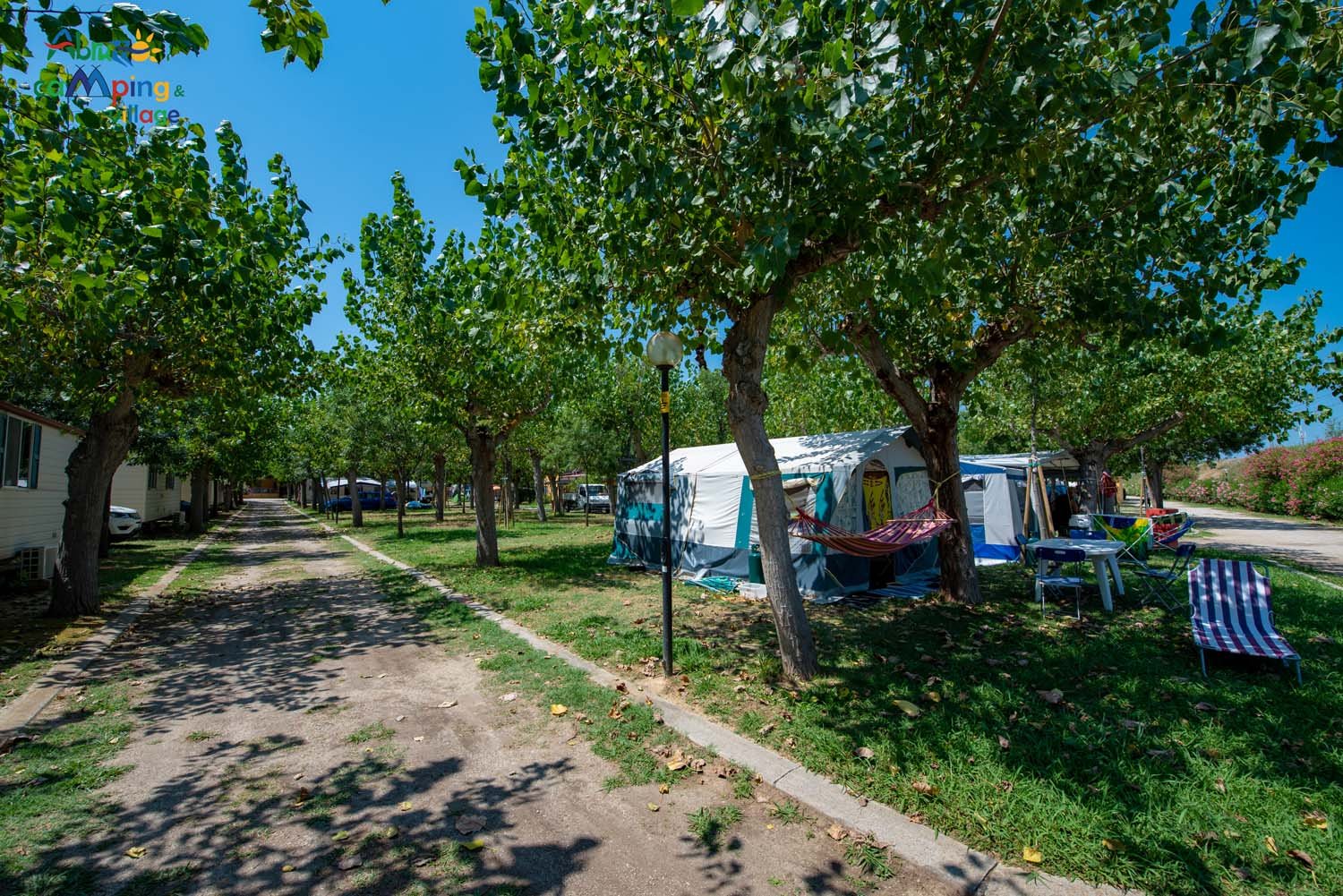 La struttura si sviluppa su una superficie di 50.000 mq con un’area camping dotata di piazzole di circa 64 mq, ombreggiate e ricoperte da un manto erboso.