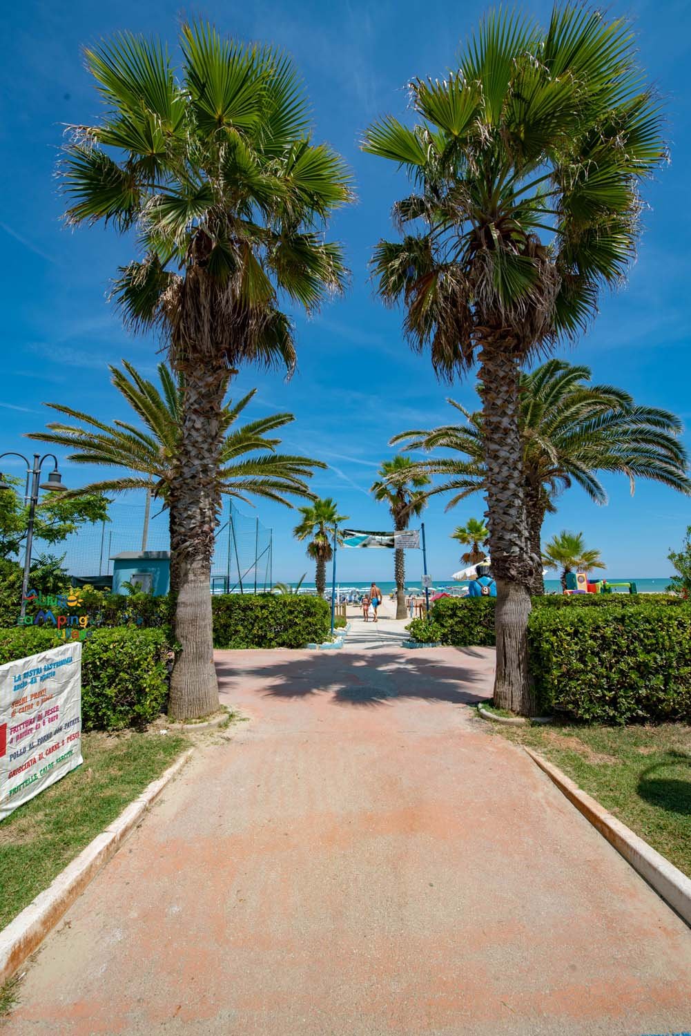 Il campeggio dista dal centro m. 1.500 circa ma è collegato con tutto il paese per mezzo dell'autobus del servizio urbano.